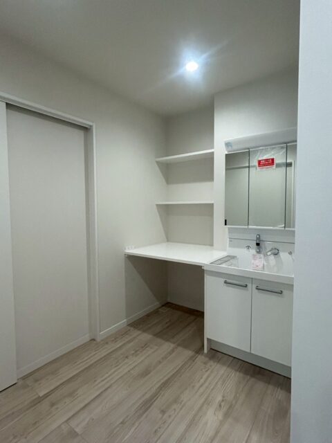 洗面化粧台の横にはあって便利な造作カウンター!