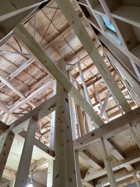 上棟した後、内部は大工さんが木工事を進めていき、