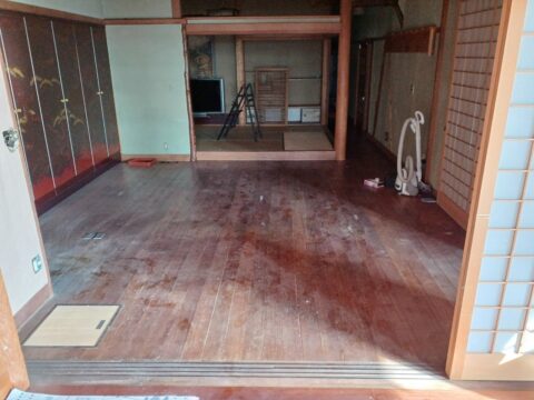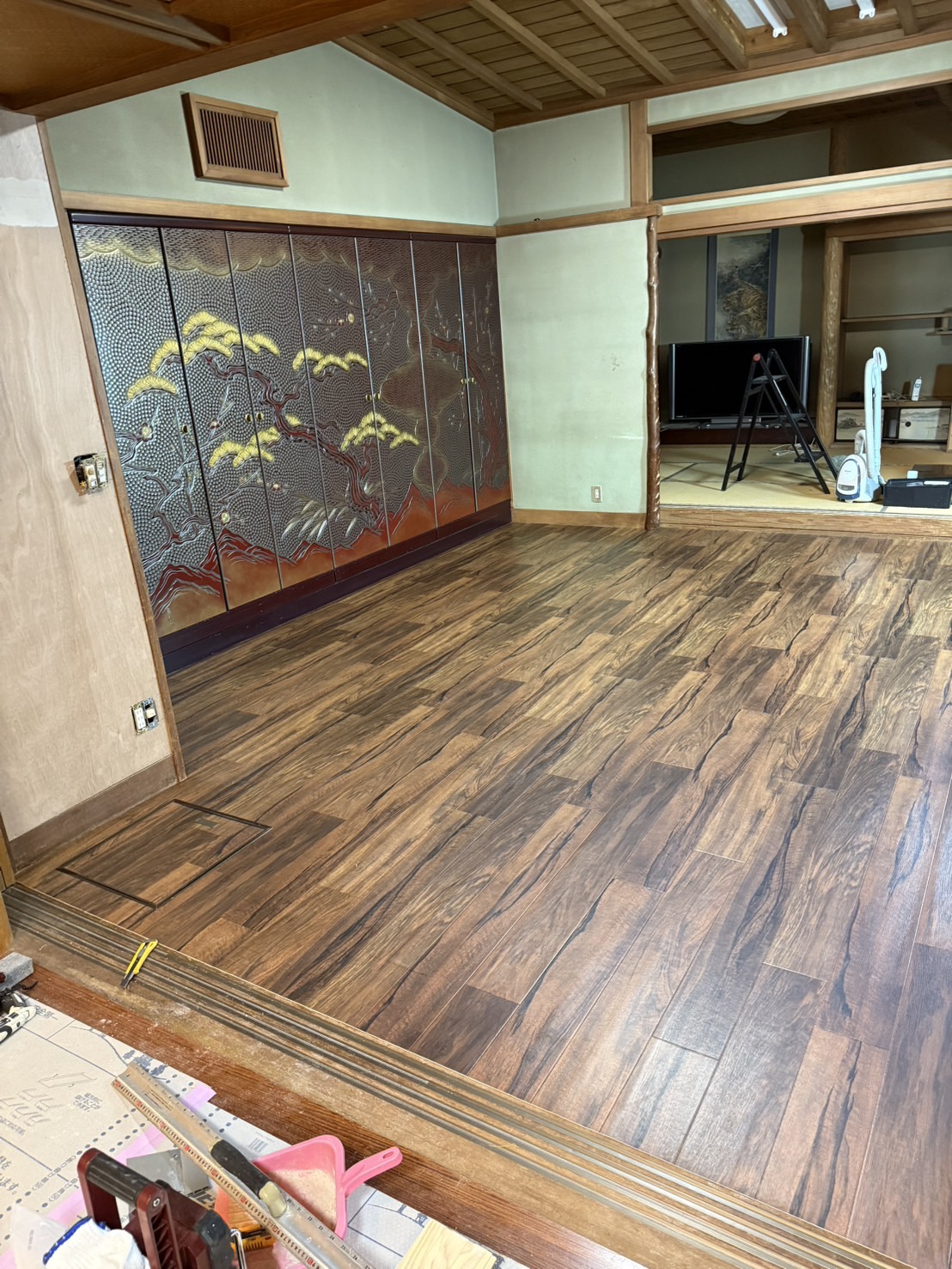 今日は、和室に隣接した板間スペースの クッションフロア(CF)上貼り工事 の様子をご紹介します。